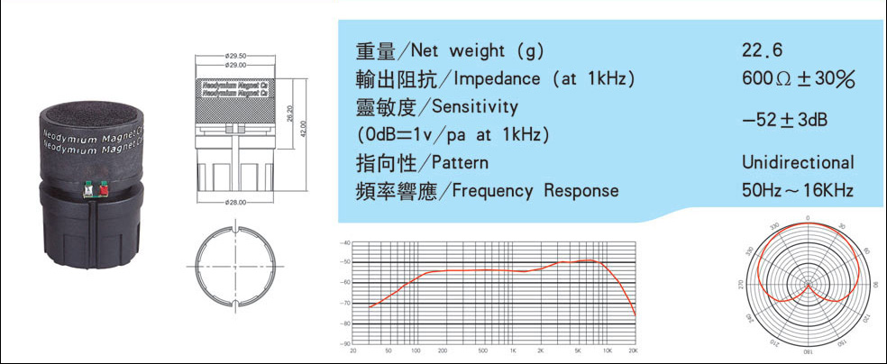 | PFDM-29D28-26H42-1(动圈式麦克风 Dynamic Microphone Cartridge ) |