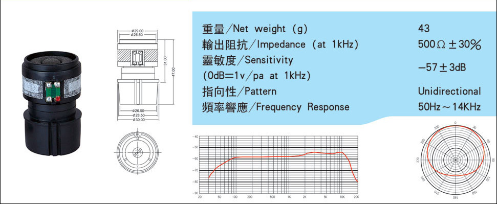 | PFDM-29D30-31H47(动圈式麦克风 Dynamic Microphone Cartridge ) |