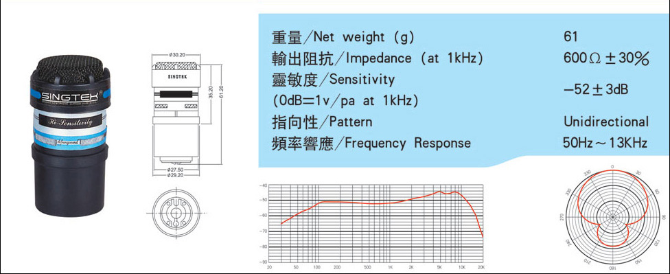| PFDM-30D29-35H61(动圈式麦克风 Dynamic Microphone Cartridge ) |